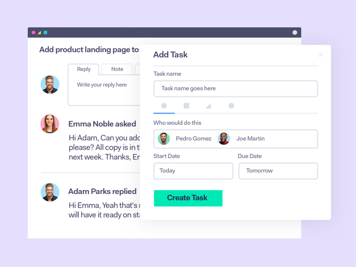 Save time on switching between different tabs and apps and keep work moving forward from one place. From the very first email to the final deliverable, manage customer requests more efficiently by creating Teamwork.com tasks ready to be worked on directly from the ticket in Teamwork Desk.